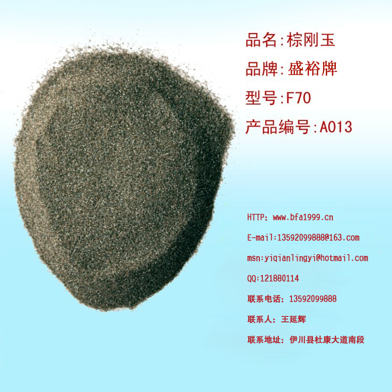 棕剛玉F70是我公司是專(zhuān)業(yè)生產(chǎn)棕剛玉的廠(chǎng)家,生產(chǎn)棕剛玉始于1999年,工廠(chǎng)在河南省洛陽(yáng)市伊川縣伊川縣杜康大道南段水廠(chǎng)南500米,我公司的產(chǎn)品全部是一級品。